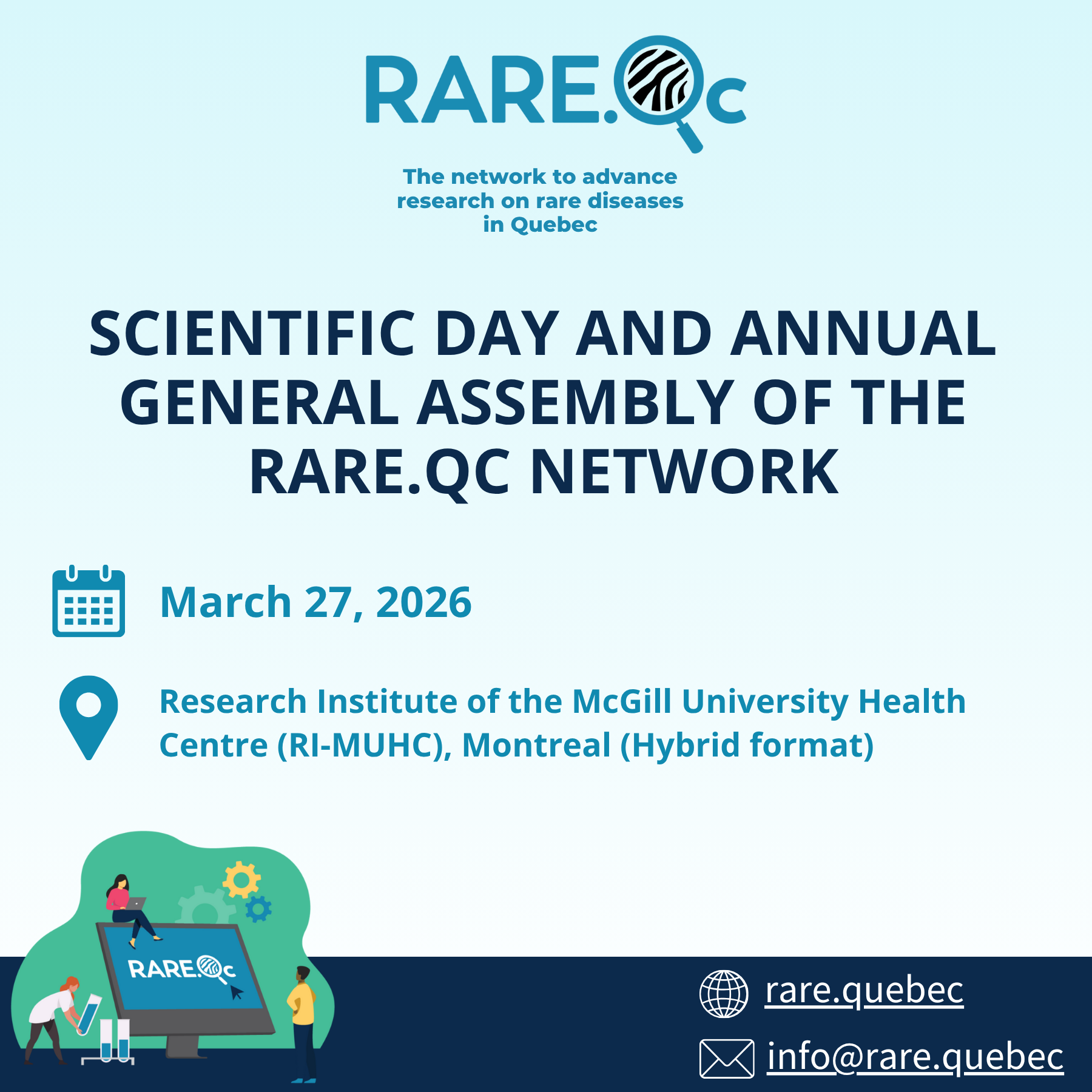 First edition of RARE.Qc’s Scientific Day, which will bring together researchers, clinicians, professionals, students, partners, and individuals affected by rare diseases.