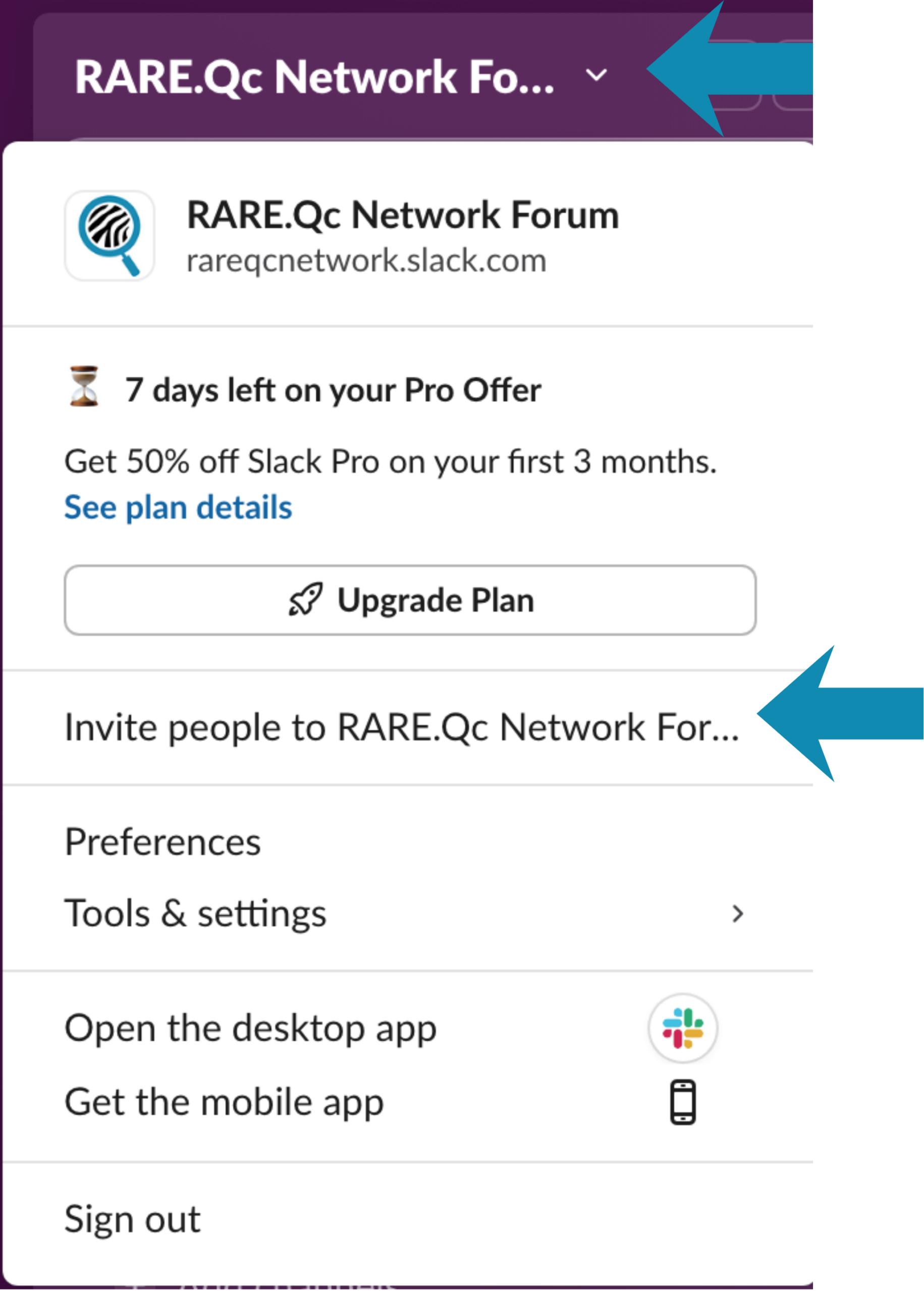 Yes! You may invite a colleague by selecting the RARE.Qc Network Forum title in the upper left corner. From the drop-down menu, select “Invite People to RARE.Qc Network Forum.” Please invite anyone who has some interest in rare disease research. - Can I use my personal email address?